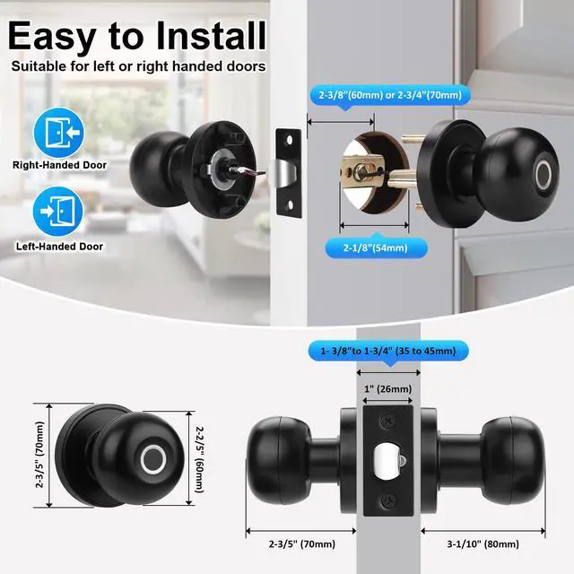 | Included Components | Exterior door knob, Interior door knob, Latch, Striking Plate, Screws, 2 Keys, Phillips Screwdriver, Template |