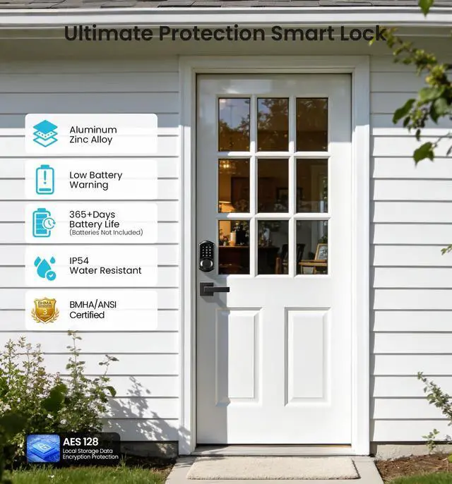 UV-resistant electronic keypad deadbolt works reliably in any weather.
