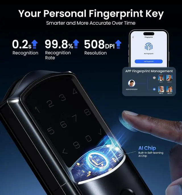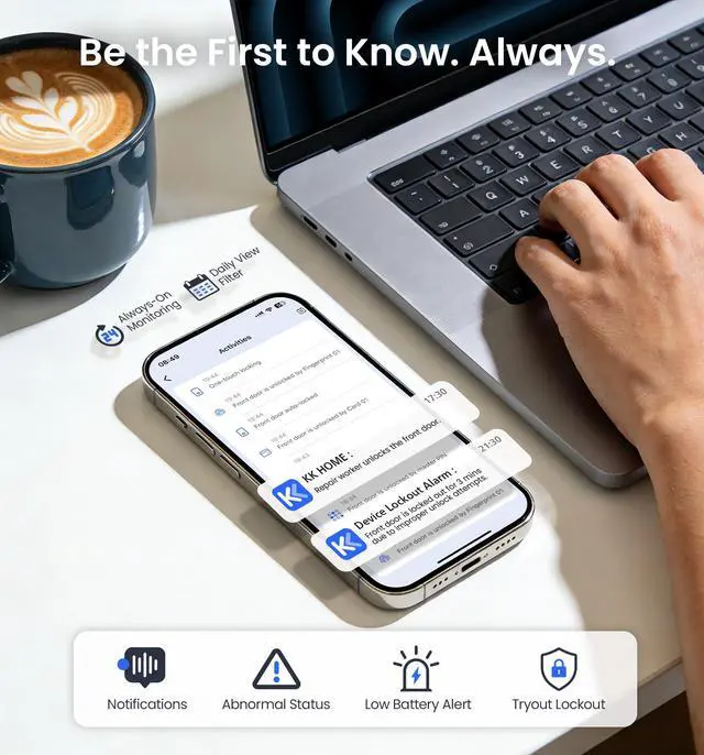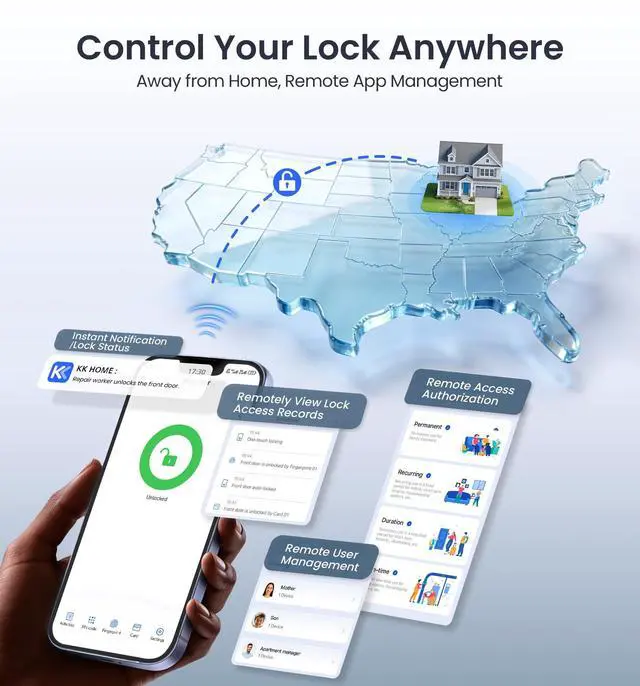 Requires only 4 batteries to operate, supports 8 for double life. Signal is 2× stronger than standard 4-battery locks, with up to 95% more stable Wi-Fi connection. (Batteries not included)