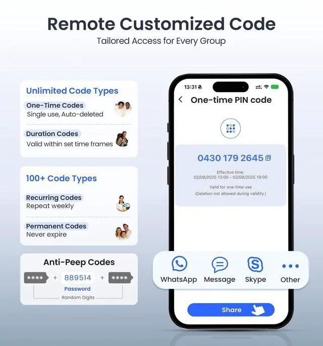Add random numbers before and after code to activate the anti-peeping function.10 wrong attempts trigger 3-min lockout, keeping your home secure.