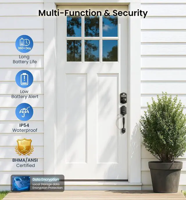 200,000+ rigorous tests, the keyless entry door lock tested by BHMA for durability of up to decades