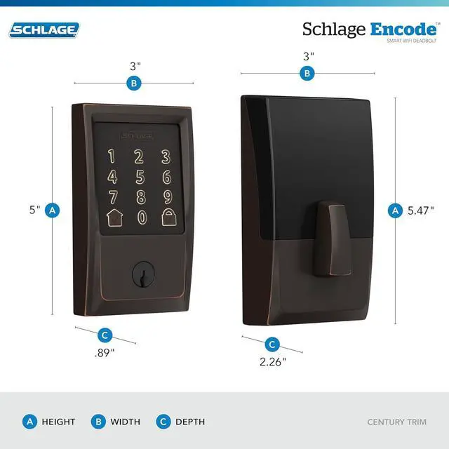 Schlage Encode Smart WiFi Deadbolt Lock for Front Door - Keyless Entry with App or Touchscreen - Works with Alexa, Hey Google, & Airbnb - Create Codes for Guests - Aged Bronze