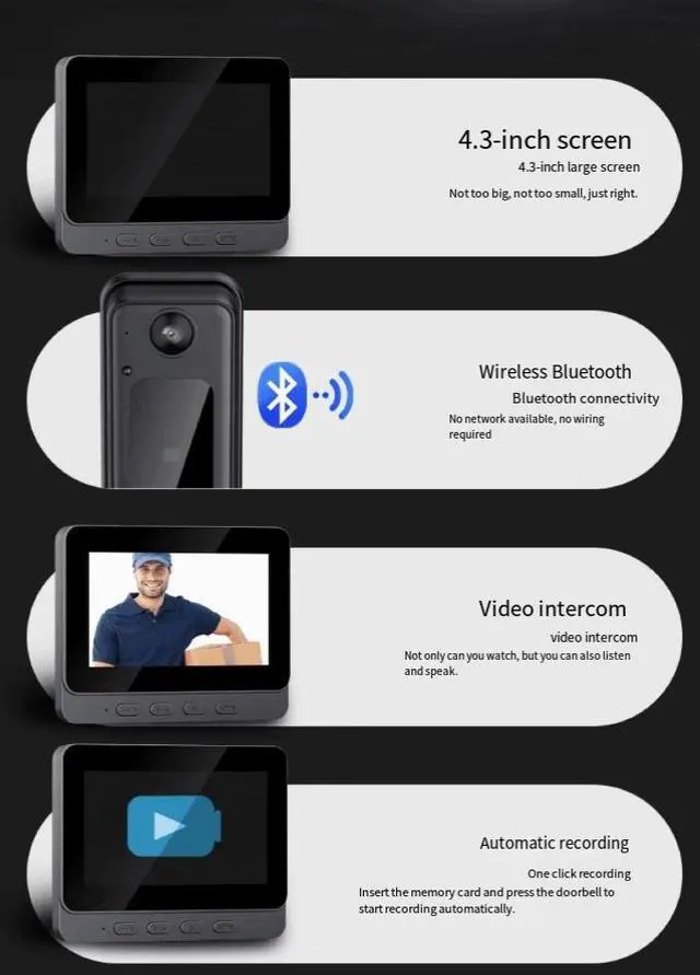 Secure your front door with this Upgraded Video Doorbell. Featuring a 4.3" large screen, ultra-wide angle lens, and two-way audio, this wireless doorbell lets you see, hear, and speak to visitors without any wiring.