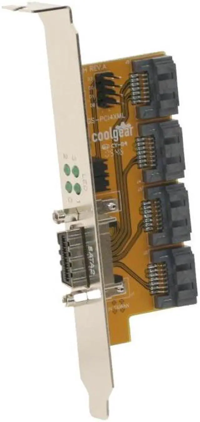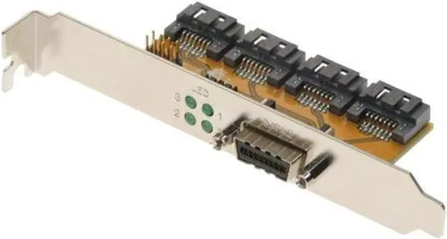 Features Provides four 7-pin Serial ATA2 Connectors. One 4-Channel External Multi-Lane (x4) Connectors. Ideal to Convert Internal 4 Ports to External 4 Ports. Supports up to 3Gb/s SATA2 Data Transfer Rate. 4 External LED Activity Indicators for each Channels. Supports Host (PC or Server) Side External Converting. Ideal for External JBOD and RAID Connections.