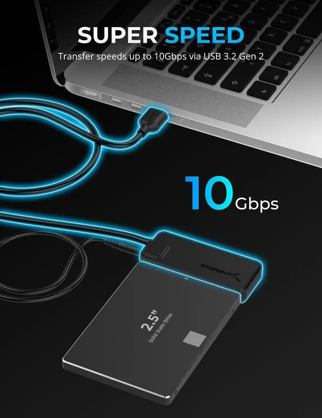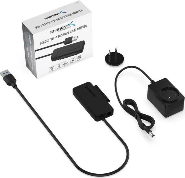 The Sabrent USB 3.2 Type-A to SATA/U.2 SSD Adapter (EC-U2SA) enables you to quickly and easily connect your 2.5/3.5 SATA SSDs and HDDs plus 2.5 U.2 SSDs to your computer via USB. This interface is rated for USB 3.2 Gen 2x1 and can reach speeds up to 10Gbps, but is backward compatible at respective transfer rates. Drives requiring extra power for stability, such as 3.5 HDDs and U.2 SSDs, can benefit from the included power adapter. It's never been easier to work with a range of drives!