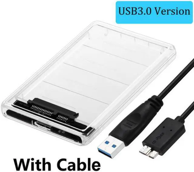 Jansicotek Transparent Clear USB 3.0 to SATA 2.5-inch Hard Drive HDD Solid State Drive SSD High-Speed Enclosure External Case