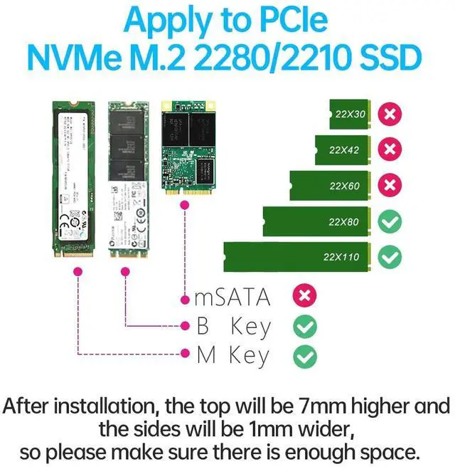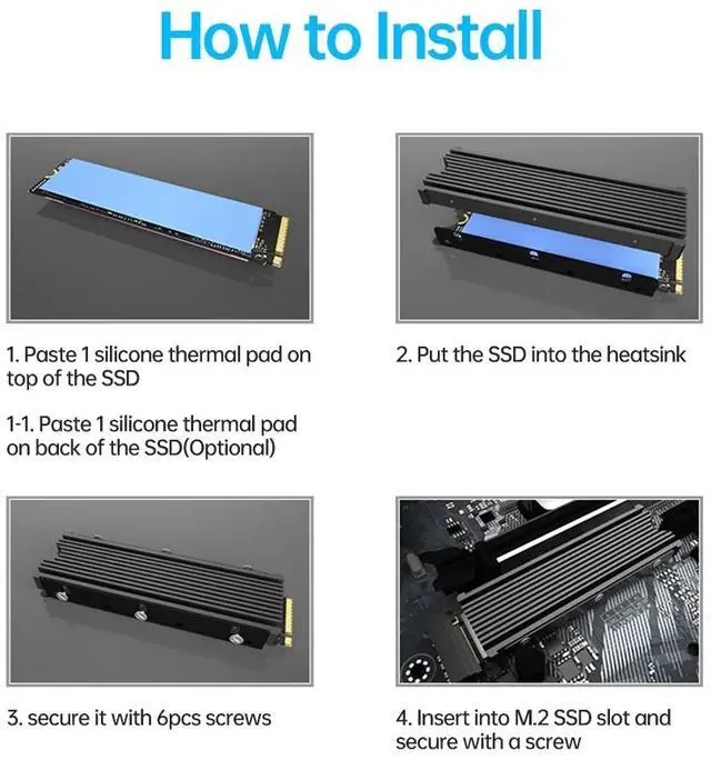 Easy to Install and Operate:With double-sided clip design, 6 adjustable height screws, and 2 spare screws are suitable for M.2 NVME SSD of various heights, stable installation, better protection of your M.2 SSD with good heat dissipation performance for PC / Play Station 5.