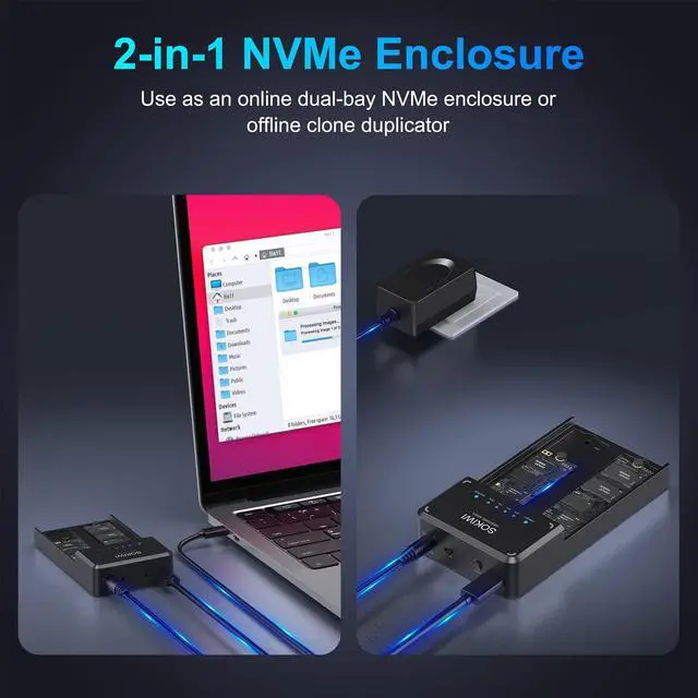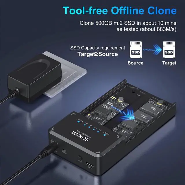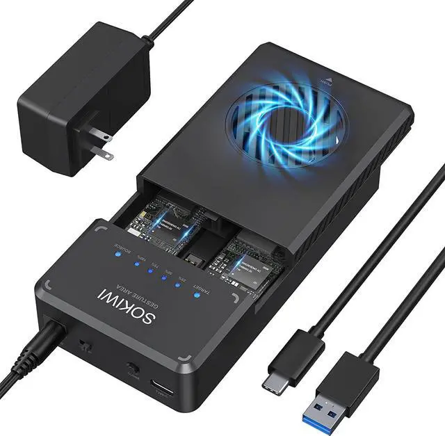 User-friendly DesignBuilt-in cooling fan provides excellent heat dissipation, protecting your SSDs from overheating temperature. Blue indicator shows clear data transfer progress. Tool-Free design, easy to use.