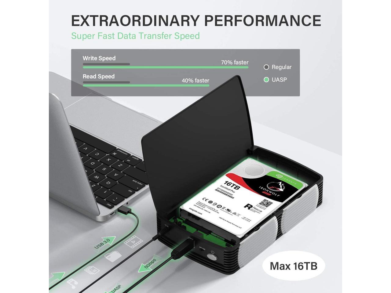 SATA Hard Drive Enclosure Case with Fan, USB 3.0 SATA HDD Enclosure for 2.5/3.5 inch SATA HDD/SSD, External Hard Drive Case,Support Up to 16TB
