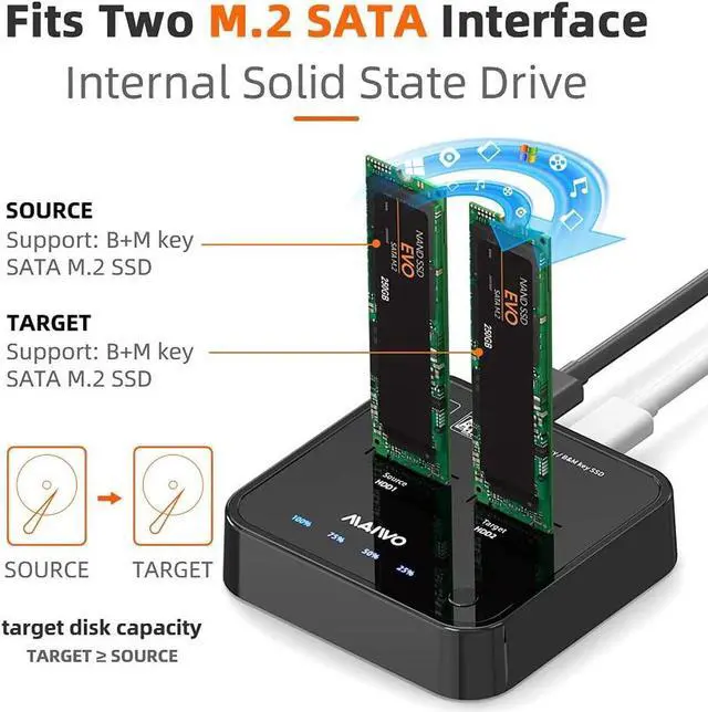![Alt view image 6 of 6 - [New Upgraded] 2 Bay m.2 SATA Docking Station, Tool-Free Type C to SATA SSD External Hard Drive Enclosure for B + M Key,Support Offline Clone duplicator and one- Key System Disk Copy Function. (5Gbps)](https://c1.neweggimages.com/productimage/nb640/B4D1S2412220YVV5ME2.jpg)
