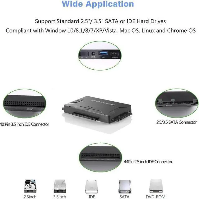 USAB 3.0 to Sata/IDE Adapter Converter Hard Driver Adapter for 2.5" / 3.5" SATA HDD/SSD & IDE HDD Converter Power Switch Support 4TB