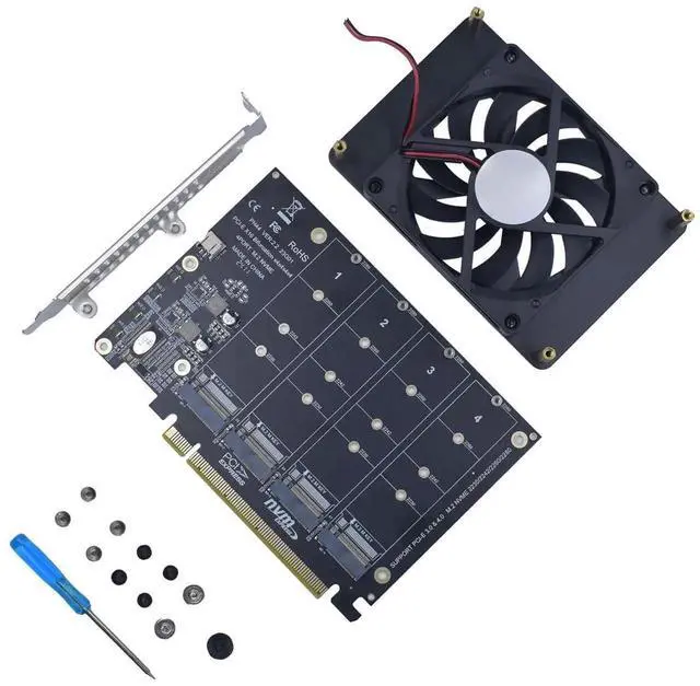 CUSTOMIZED COOLING: Specifically designed for our PCIe 4.0 x16 to 4 x M.2 card, this quiet DC Brushless fan delivers targeted airflow to heat hotspots, dramatically reducing operationa