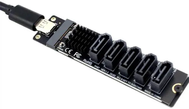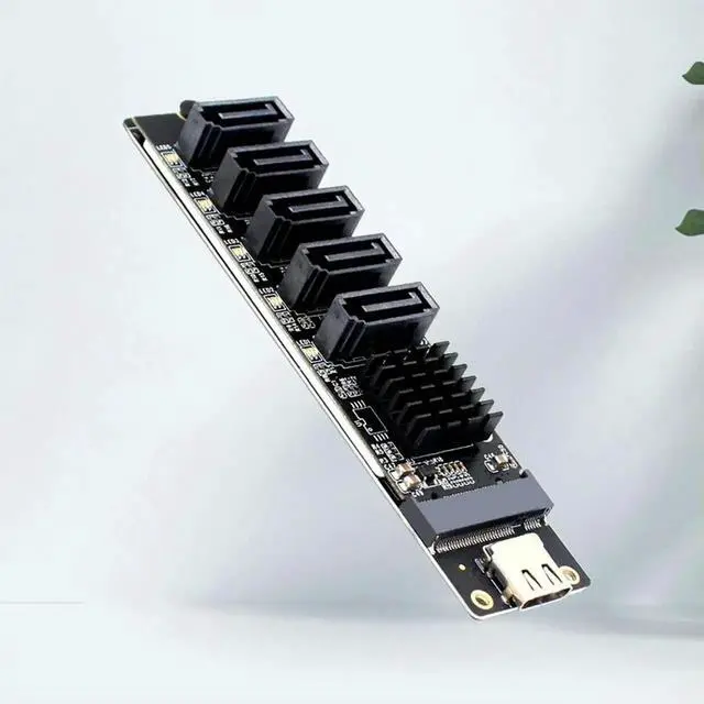 Type C to 5-Port SATA 3.0 Adapter Card 6Gbps JM575&JMS580 Chip USB C to SATA 3.0 Expansion Card Plug & Play Riser Card
