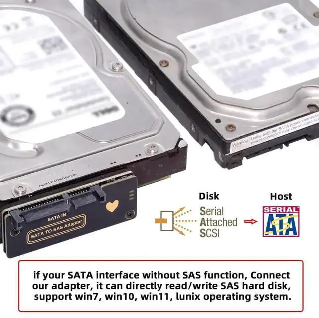 3) If your SATA interface without SAS function, Connect our adapter, it can directly read/write SAS hard disk, support win7, win10, win11, lunix operating system.