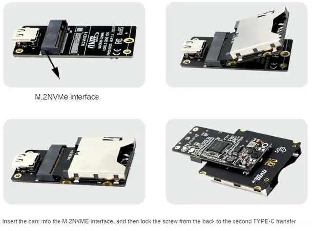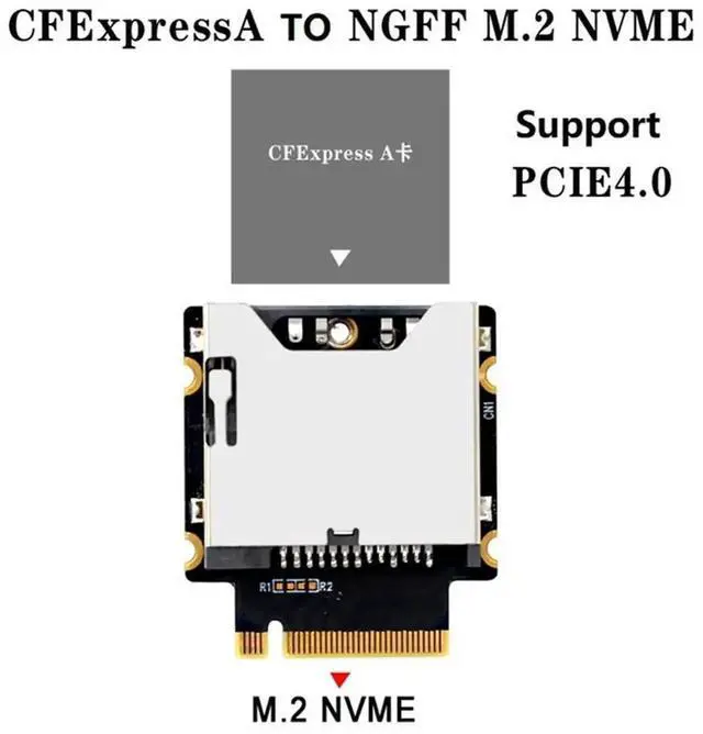 Cfexpress Type-A To NGFF M. 2 Nvme M-Key Extension Adapter Card Support Pcie 3.0 4.0 X1 Black+Silver PCB+l