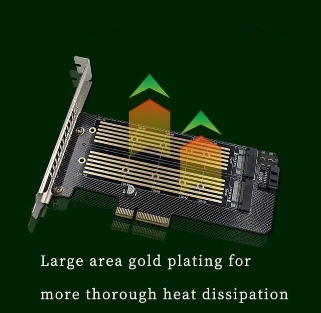 PCIe 3.0 + SATA Dual Interface Allows installation of one NVMe SSD (via PCIe slot) and one NGFF SATA SSD (via SATA port), enabling simultaneous operation of two drives.