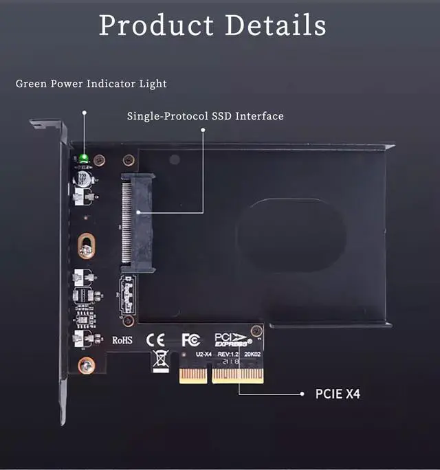 PCIe 3.0 / 4.0 x4 to U. 2 Single-Protocol Hard Drive Adapter Card