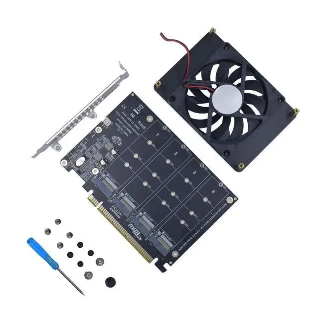 CUSTOMIZED COOLING: Specifically designed for our PCIe 4.0 x16 to 4 x M.2 card, this quiet DC Brushless fan delivers targeted airflow to heat hotspots, dramatically reducing operationa