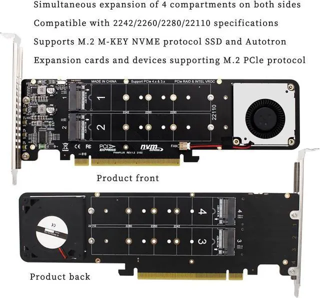 Compatible with 2242 2260 2280 22110.Support M.2M-KEY NVME protocol SSD.Supports M.2 PCle protocol expansion cards and devices.