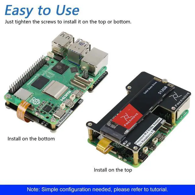 Easy to Use: Just tighten the screws and connect the ribbon cable to install it on the top or bottom (Simple configuration needed, please refer to tutorial)