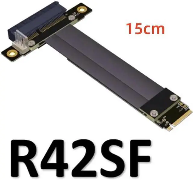 R42SF:PCI-E x4 to M.2 key-M NVMe Slot turn 180 degree splint vertical extension cables.