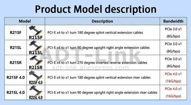 R21SF:PCI-E x4 to x1 turn 180 degree splint certical extension cables,PCIe 3.0 x 1(8G/bps).