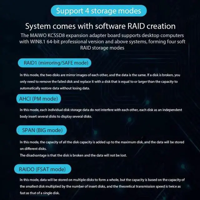 Main control chip: ASMedia ASM1166+JMicron JMB5xx.
