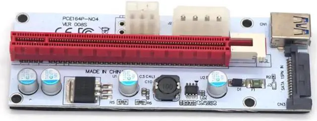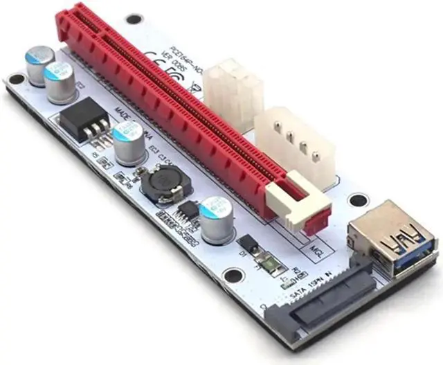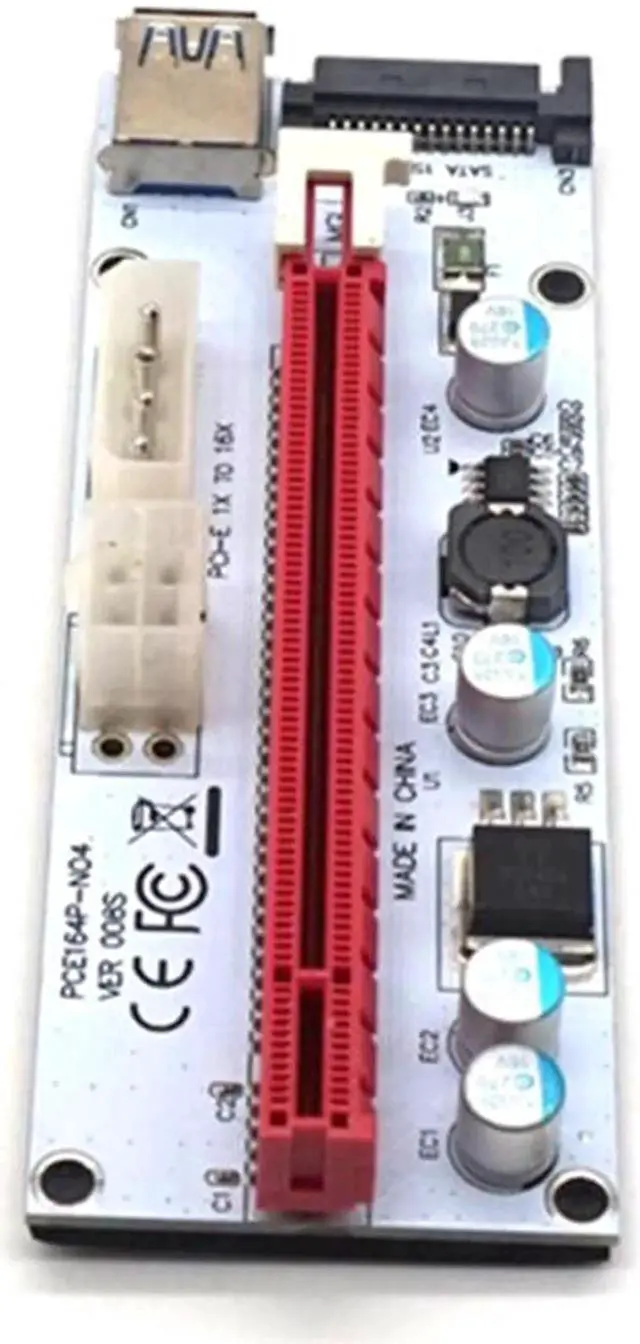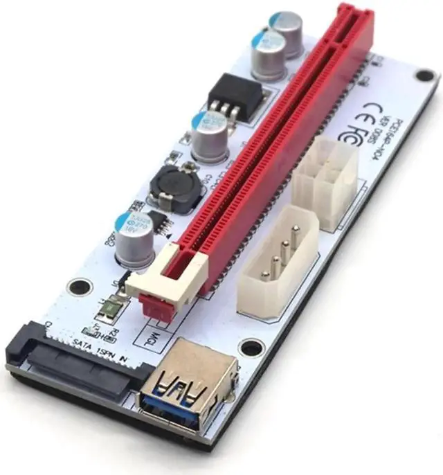 VER008S PCI-E Riser Card with 4pin 6pin SATA 3in1 Molex Power Supply PCIe 1X to 16X Extender for BTC BCD LTC Miner
