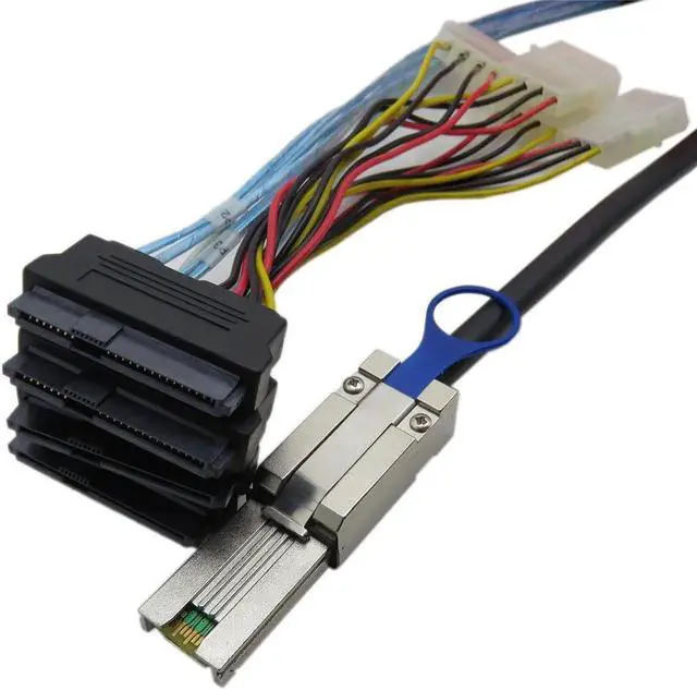Connect the external mini SAS 26 pin connector on your controller to four 29 pin SAS connectors on your SAS hard drives.