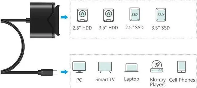 • The USB 3.0 to SATA adapter cable lets you connect any 2.5'' or 3.5'' SATA drive and HDD drive to your computer through an available USB port -- the easiest way to upgrade the hard drive in your laptop by adding an external SSD via USB 3.0.
