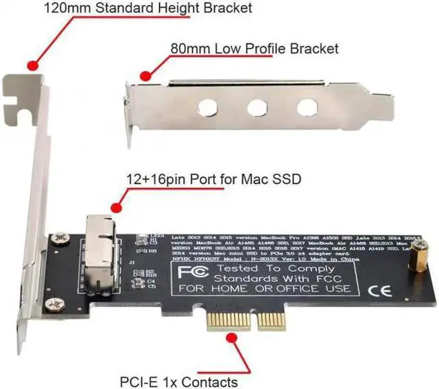 Aomoproing PCI Express PCI-E 1X to 12+16Pin 2013-2017 Mac Pro Air SSD Convert Card for A1493 A1502 A1465 A1466
