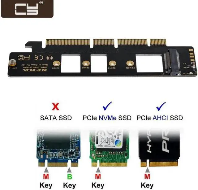 • 1.M key M.2 NGFF SSD to PCIe x16/X4 adapter.