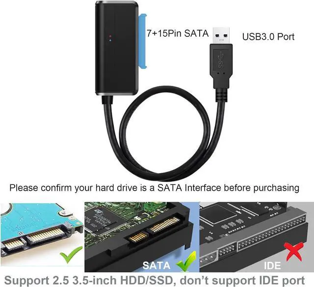 EASY ACCESS TO SATA SSD & HDD: The SATA to USB adapter allows you to connect a 3.5"/2.5" SSD HDD with your computer to expand storage, upgrade the system, back up files, retrieve and recover data