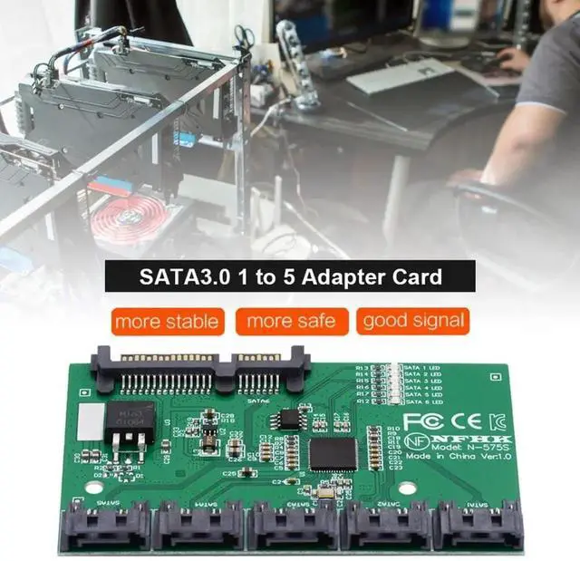 SATA 3.0 Splitter - 1 to 5 Ports Adapter, HUB Converter, PM Multiplier, Port Selector JMB575