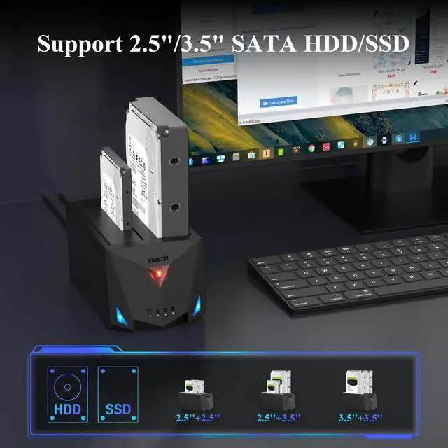 Universal CompatibilityFIDECO hard drive docking station is widely compatible with Windows, Mac OS and Linux. Please note that it can only support 2.5" or 3.5" SATA HDD/SSD. Just plug and play! No driver is needed!
