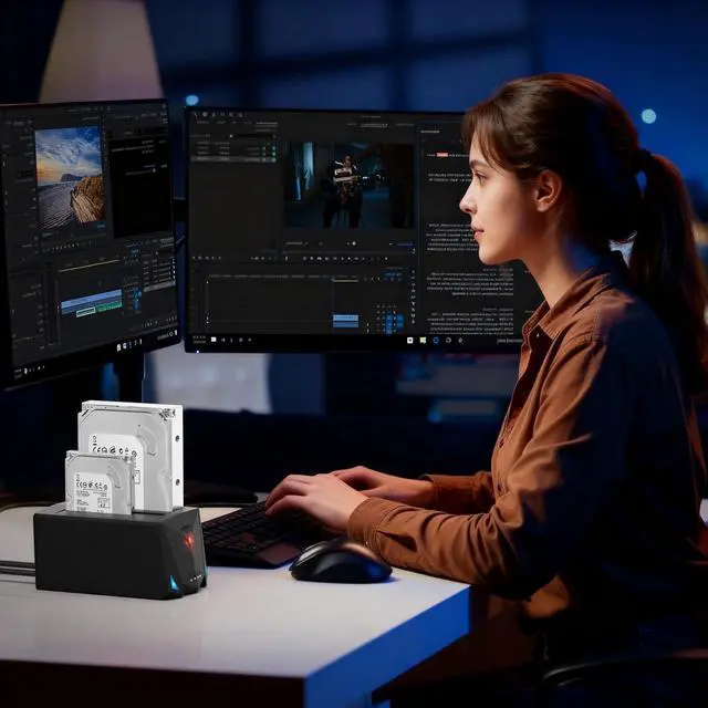 Useful Type-C PortFIDECO hard drive dock is engineered with type-C port, and we offer one USB C to USB C cable and one USB C to USB A cable, so you can use the 2 USB cables to utilize the full performance of your HDD. Access your files directly with desktops or laptops.