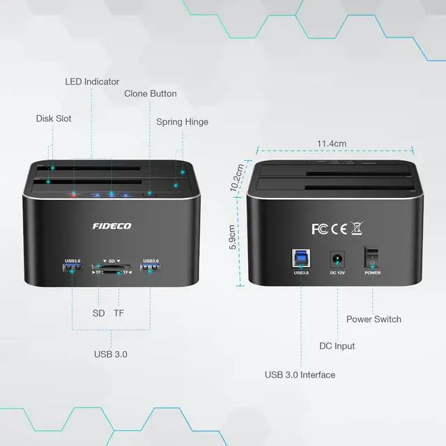UASP USB 3.2 Gen 1 Super SpeedFIDECO hard disk docking station can support UASP USB 3.2 Gen 1 fast data transfer speed with rates up to 5Gbps. It can be also downward compatible with USB 2.0 to meet your more needs.