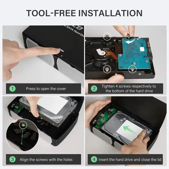 Our SATA hdd encosure made with premium aluminum and plastc materia, slim, durable and shockproof Protect your hard drive from Wearing and dust.