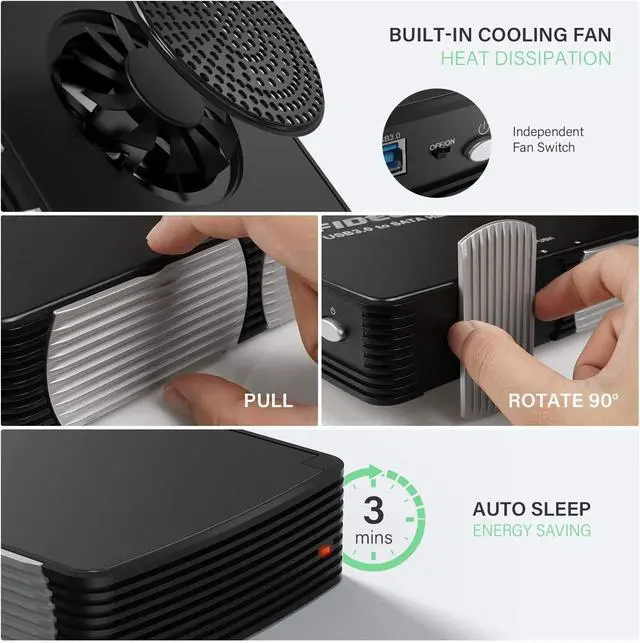un on the fan swich, the fan wilwork and provide excellent hea disspation for your sata hard drive, prolect from trouble caused by hign temperatures, extending ietime
