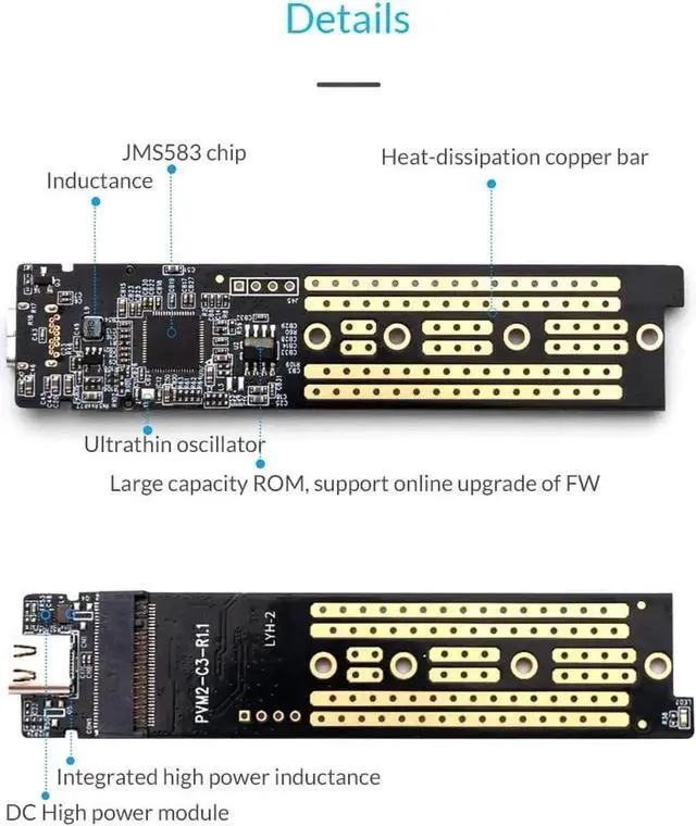 HIGH SPEED - Adopting UASP and Trim supported JMS583 master controller and latest USB 3.1 Gen 2 Type-C port, it supports up to 10 Gbps data transfer speed, and can read & write up to 950+ Mb/s for compatible SSDs.