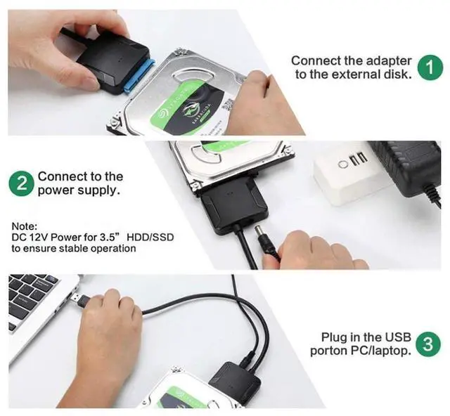2. The USB 3.0 to SATA converter cable can connect any standard 2.5 -inch SATA hard drive or solid state drive (SSD) to the computer through the USB 3.0 port. Its your backup file or upgrade laptop hard drive. This product can help you easily solve the problem.