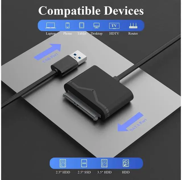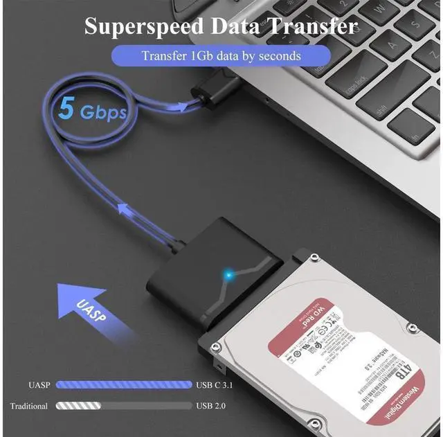 Supports data transfer up to 5 Gbps, backward compatible with USB 2.0 / 1.1. This SATA to USB 3.0 adapter supports UASP and TRIM technology, it performs 70% faster at reading and 40% faster at writing than conventional USB 3.0 when connected to a computer that also supports UASP.