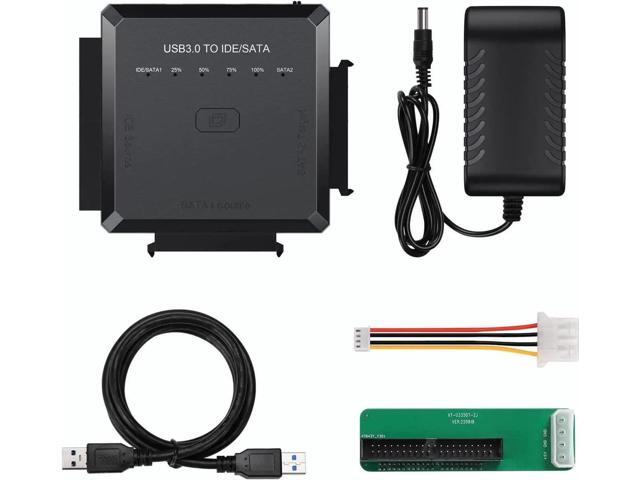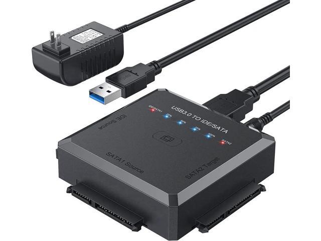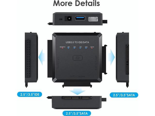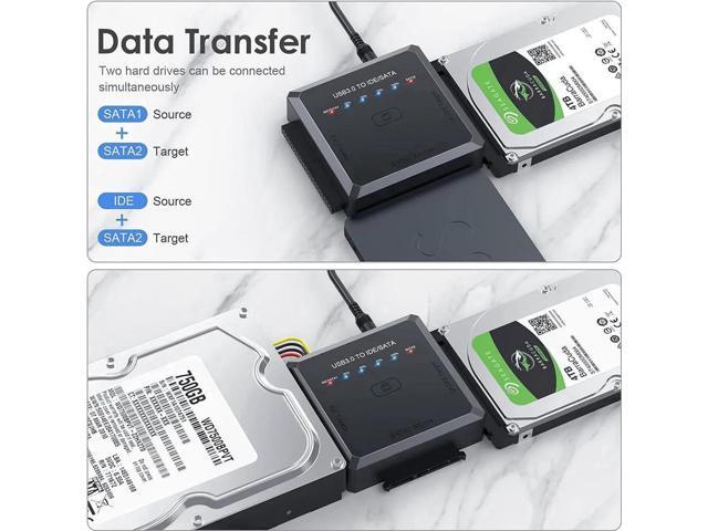[3 in 1 Hard Drive Converter] Designed for all 2.5 or 3.5 inches SATA or IDE hard drives. You can use this hard drive reader universal to simultaneously connect 2 HDDs for data transfer - IDE Source+SATA2 Target, SATA1 Source+SATA2 Target. Please note that IDE Source and SATA1 Source cannot be connected simultaneously.