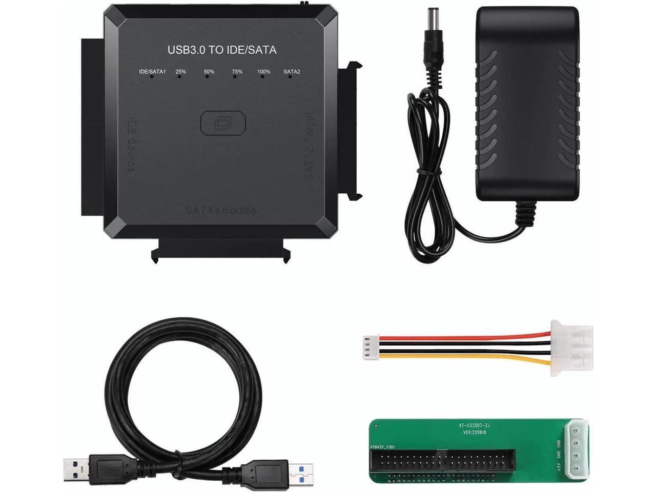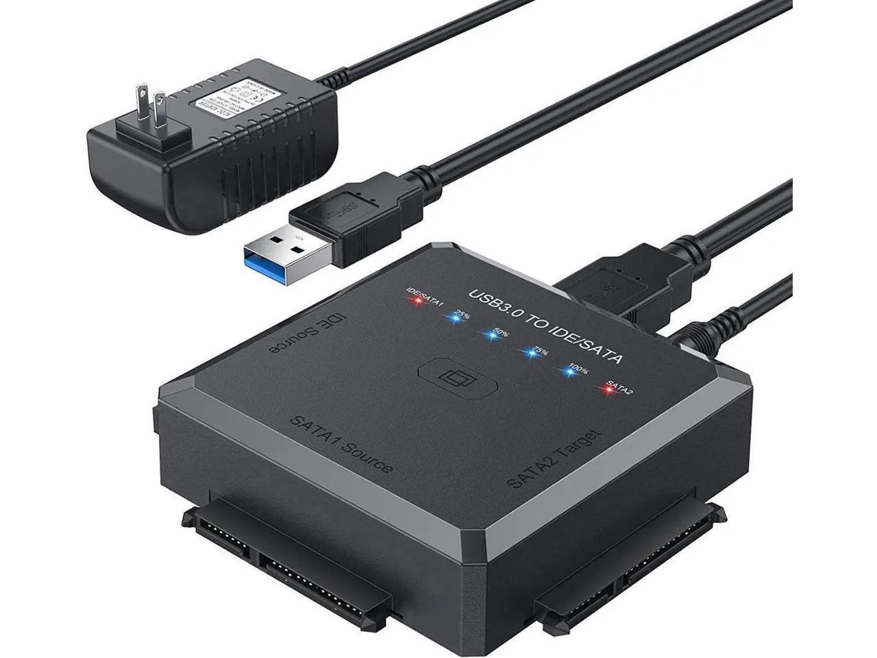 [Upgraded] Hard Drive Reader - SATA/IDE to USB 3.0 Adapter [One-Click Backup & Progress LED Light] External Hard Drive Adapter Converter for 2.5/3.5 HDD/SSD Hard Drive, Included 12V/2A Power Adapter