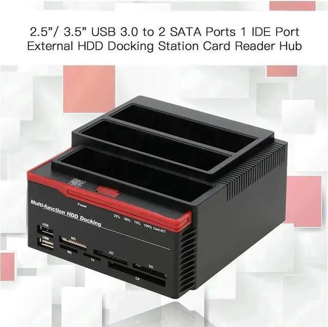 Plug and Play: No driver needed, support hot plug. Simultaneously read two hard drives. Support M2 / MS / TF / SD / MMC / MS / CF / XD slot (memory card NOT included). LED indicator shows the read and write status of hard disk and power supply