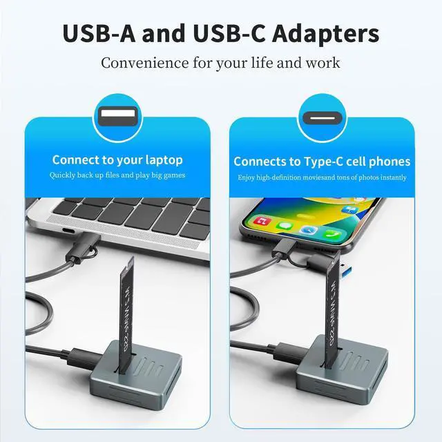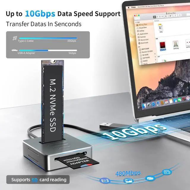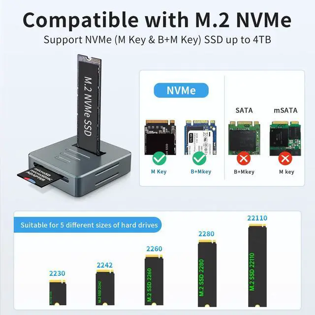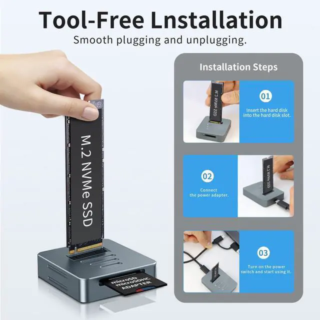 SSS·GRGB Aluminum M.2 NVMe SSD Enclosure Docking Station & SD Reader Adapter, M.2 to USB Adapter 10Gbps, Fast Heat Dissipation, NVME M-Key/(B+M) Key SSDs Dock , Gray
