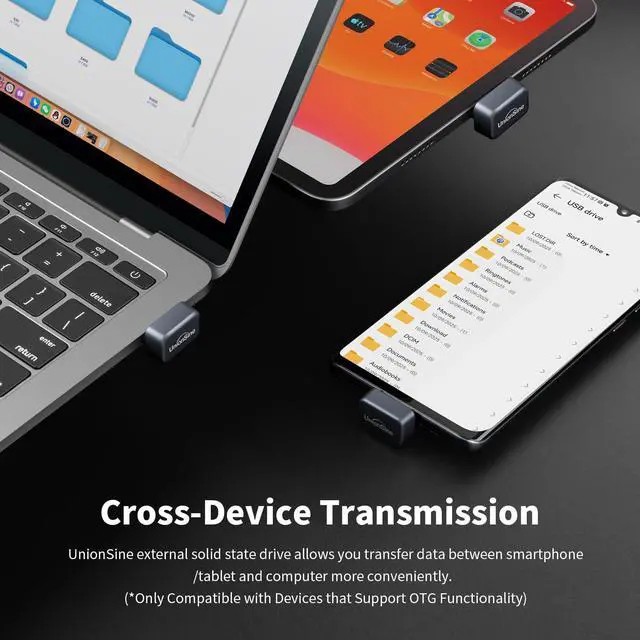 UnionSine High speed external ssd-stick compatible with computer equipment, smart TV, car audio, smart phones, iPhone 15/16/17, iPad, Laptop, Macbook and more.