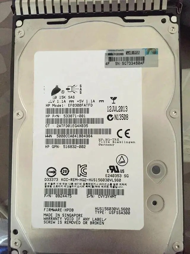 For 707,568-B21 300G 15K SAS 3.5 700,937-001 server HDD