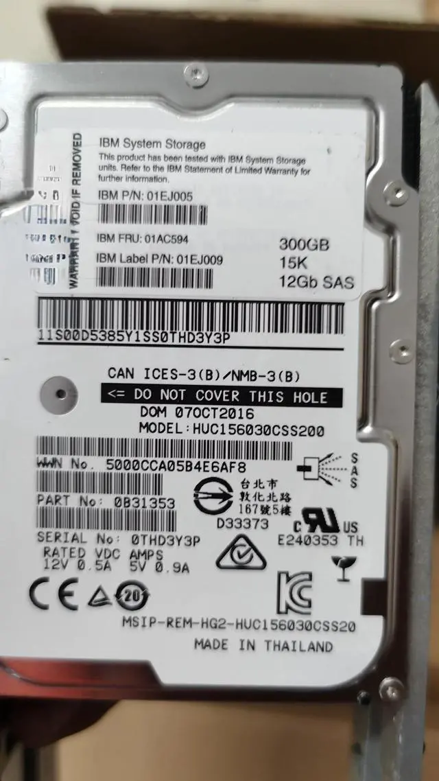 For 01EJ005 01AC594 01EJ009 300G 15K 2.5 SAS 12G V5000V2 HDD