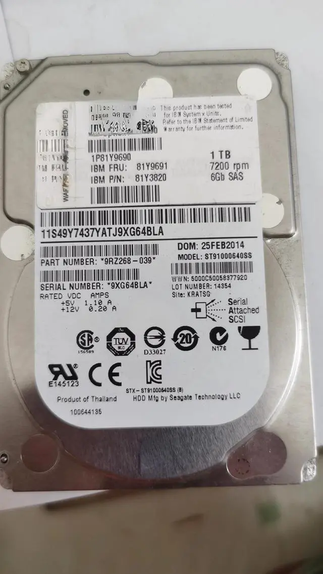 For 81Y9691 1T 7.2K SAS 2.5 81Y3820 81Y9690 server HDD